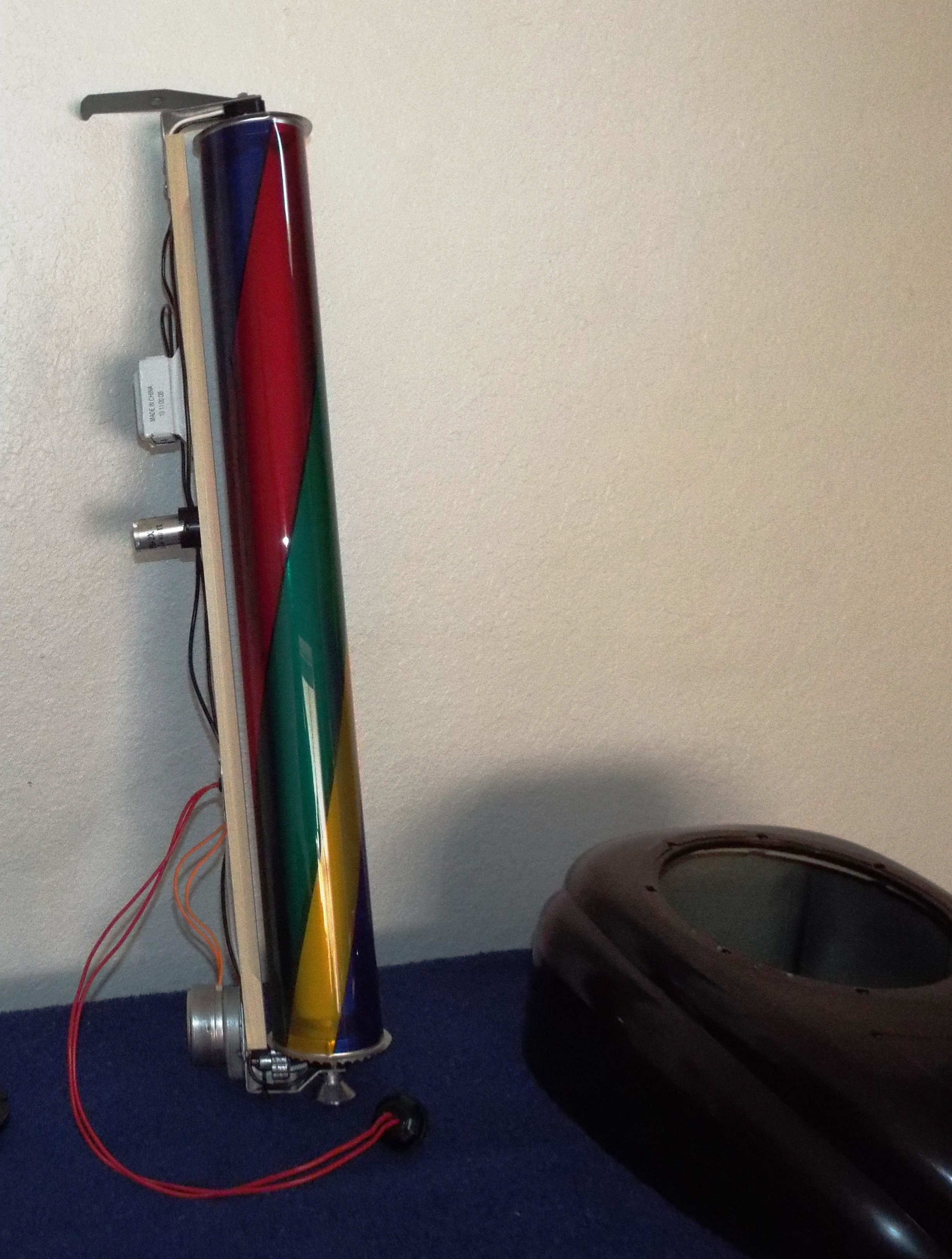 The New G has a C style pilaster conversion with colored animation. I really like this treatment. Coupled with translucent pilasters it really tricks a G up. Back in the 90’s we used Fred Mlakar’s animation units. He made these for many makes not just Seeburg. These are self-contained light sticks with an animation motor and a color cylinder that popped in place neatly between the caster stud and a slide-in wood plate. The gears fell off the motors in the New G. I really didn’t understand how they were originally attached. Something fell out but I didn’t know what it was. The motor shaft is very thin at 1/8″ and the gear hole is easily 3/16″ maybe 1/4″. I thought of very carefully drilling and threading holes for set screws or perhaps epoxying them on.