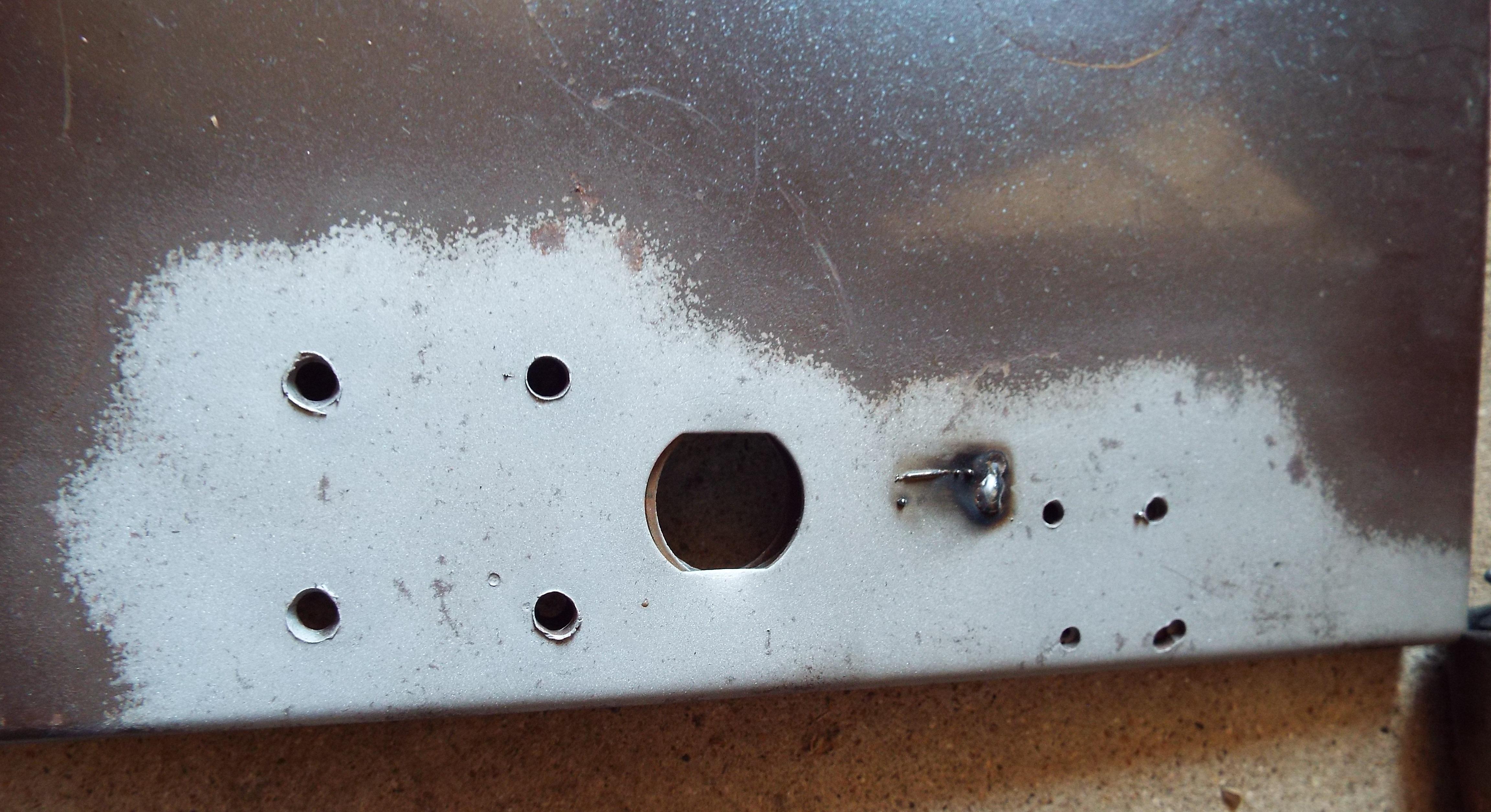 Cleaned the bass enclosure inside and out on the SMC2. Looks tons better. No rebate money found. The cashbox door has many holes in it where the operator used what looks like two different lock and lock bar set ups. This is when it’s nice to own a MIG welder and have years of experience welding up holes. There’s a little trick I learned and that is to back up holes with a copper plate from the inside. The weld will not stick to the copper, it helps dissipate heat, and keeps the weld flat on the bottom. It took longer to drag everything out and get set up for welding than it did to weld up the dozen holes. After welding them up I ground them down, sandblasted the door, glazed it and painted it with the same brown as the frame and coin cup. It looks good and no-one knows it had holes. I’m good with metal but very so-so when it comes to wood. I’ll fill the holes in the cabinet but I know I won’t be able to match them well enough to hide them. Sometimes doing the best ya can do is all ya can do.