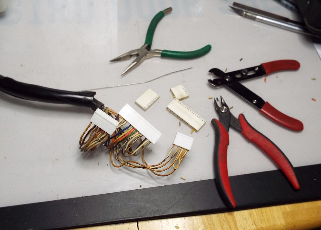 I took both SMC2 MCU’s and a PCC over to Jeff’s Saturday morning to test them in the SMC1 and see how they acted. That was quickly nixed when I saw all the wires ripped out of one of the MCU connectors. I switched gears and took that harness out, the mechanism, the CPA, and the PCC. I will have the capacity now to swap out parts now with the SMC2 to narrow the problem I’m having with it down. The mech is filthy, someone over-oiled it religiously. I’ll have to repair the harness of course.
