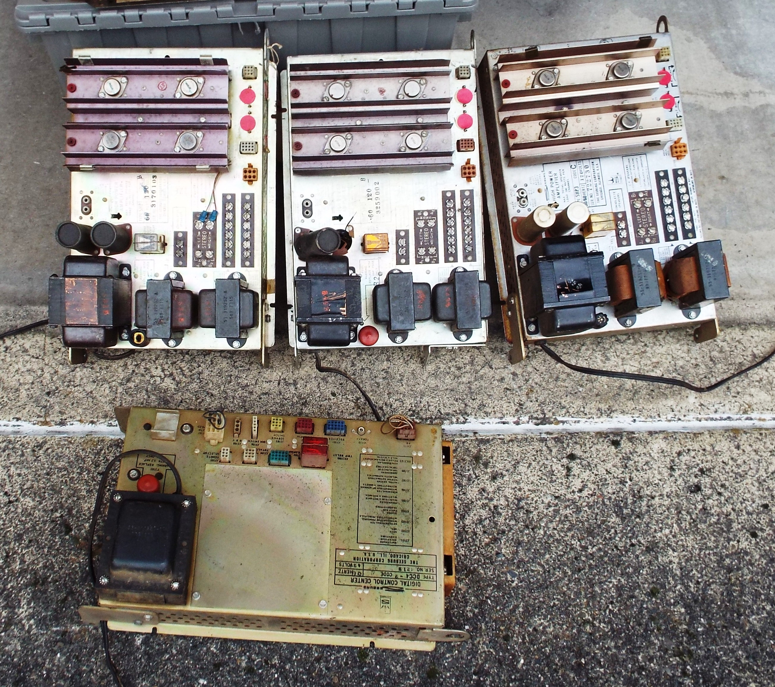 I spent about 10 minutes looking the through the jukebox to get an idea of what need to be done. The mirrors have the incorrect mirror glass with horrible homemade frames. The stainless piece across the upper back door is missing. The upper back door itself looks like a homemade job that they didn’t do too bad on. I’d like to replace it with one having the correct latches and not the two door locks it now uses. I may redo the gold foil inside the cabinet. It had been replaced but someone did not do a very good job. Lots of creases and loose flaps. One of the glass grill tubes is broken. They had it taped together. I’ll replace the blue grill cloth with a sparkly gold cloth that I like to use. And those pilasters! Someone did a decent job, really. Decals of some sort were used. It hides the fact that these pilasters are cracked with one of them having a small hole. The jukebox will look much better with white pilasters. All the animation is missing except the lamp holders. The jukebox has the MRA1 amp used in the B’s and some C’s. I’ll most likely use it unless an MRA3 falls in my hands. I’ll replace the red indicator strip with a white and blue one that will look sharp. The side covers need decals. Little details count as much as the big ones.