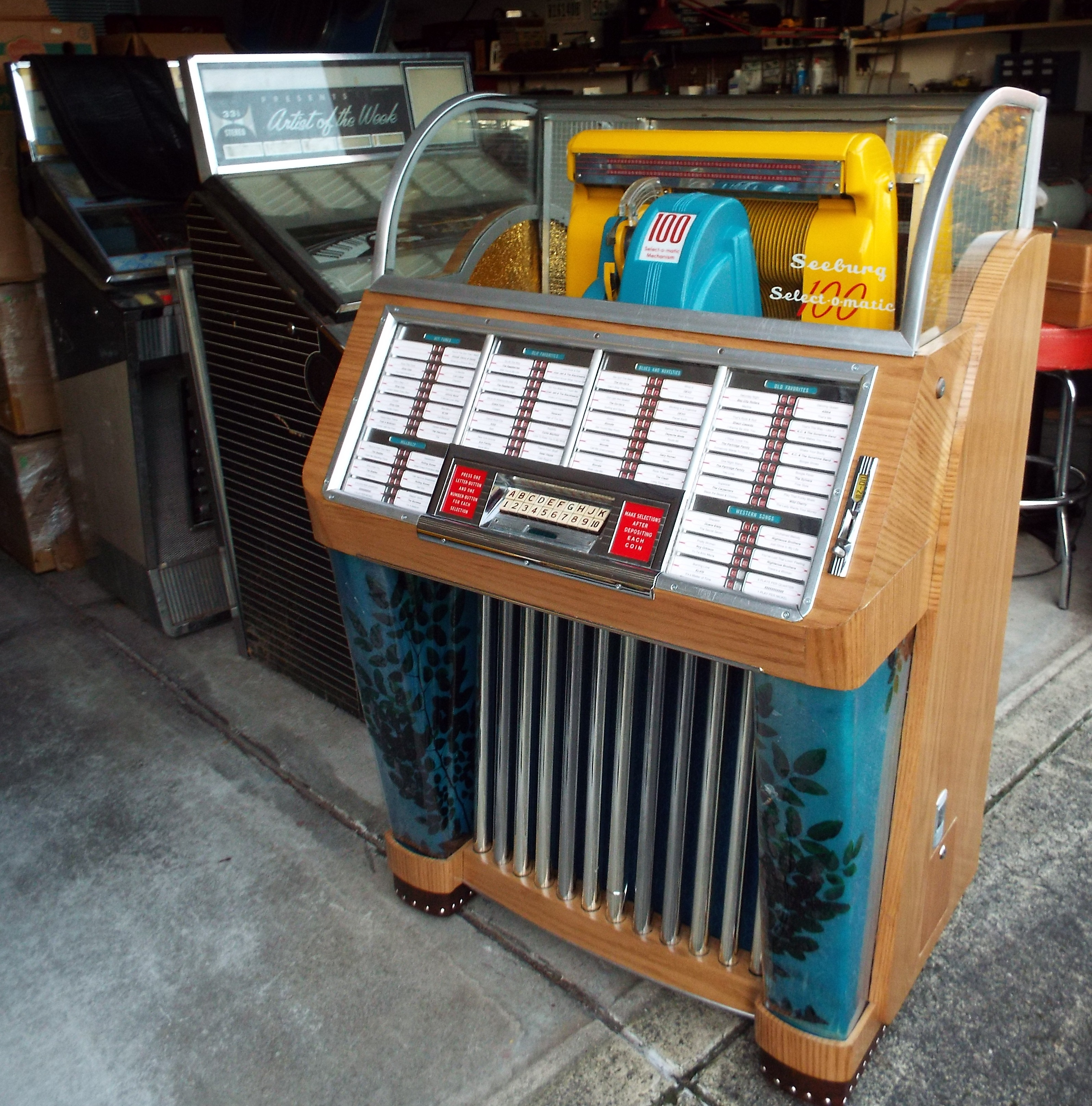 Even a blind hog finds an acorn now and then. This is a nice shiny acorn too! I was perusing the online marketplace as I do every morning and spotted a 1952 Seeburg M100C with a beautiful cabinet done correctly in zebra wood for the low price of $1000. Completely restored these used to go for $5000 all day. The price has dropped a bit since the heydays but this will still turn a nice profit. Dome was good, all chrome looked good. Glass tubes, selector, coin glasses, painted mechanism covers. Has some funky looking pilasters but all the hard work had been done. This from the pictures posted.