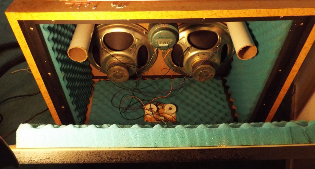 Always something in my Seeburg world. I have a pair of modified mid 60’s Seeburg DDS-1 speakers in the dining room I use for my stereo system. Two 15 inch bass speakers and a huge Altec Lansing 811 horn. I use a dual 10 band EQ with it to dampen the massive treble from the horn and bring up the mid-range. They sound fabulous. Anyways….I finished another “ship in the bottle” PA-4 Library Unit pre-amp and always use the Library Unit mechanism on top of the right speaker to test them with. I connected the pre-amp. It is a mono pre-amp but I have the inputs to the Kenwood amplifier twinned for output to both speakers. I noticed real quick that the right channel sounded very flat with hardly any output. What now?