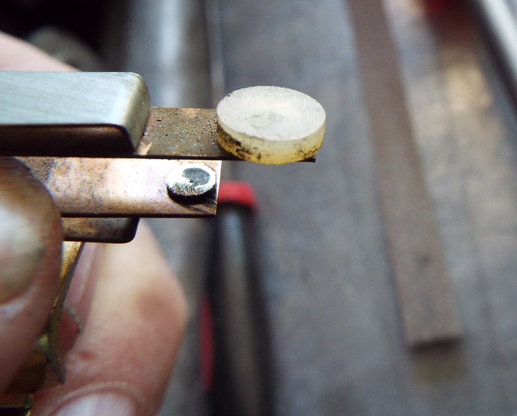 Now I have a running mech and will connect 115vac to it and run it back and forth on the bench while manually tripping and rejecting to watch it operate. Once I’m satisfied that the mech is running right I’ll file and clean all mechanism switches. The detent points were burned and pitted on this one. The burned spot in the picture is about 40% of the contact face. It needs to be filed completely down. A fine point file took care of the pits and then a burnishing file polished the points back to like-new. I was curious as to what grit a burnishing file or tool is but can find nothing. So I used the finest grit sandpaper I had which was 400 grit and it was not fine enough at all. When properly burnished the point face will be shiny and smooth as chrome. I’d like to get some 1000 or 2000 grit sandpaper for grins to test.