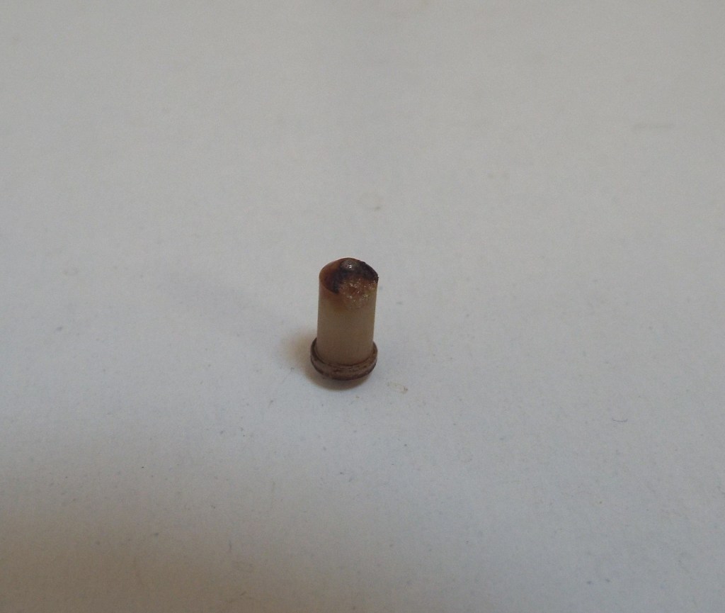 The New G has a C style pilaster conversion with colored animation. I really like this treatment. Coupled with translucent pilasters it really tricks a G up. Back in the 90’s we used Fred Mlakar’s animation units. He made these for many makes not just Seeburg. These are self-contained light sticks with an animation motor and a color cylinder that popped in place neatly between the caster stud and a slide-in wood plate. The gears fell off the motors in the New G. I really didn’t understand how they were originally attached. Something fell out but I didn’t know what it was. The motor shaft is very thin at 1/8″ and the gear hole is easily 3/16″ maybe 1/4″. I thought of very carefully drilling and threading holes for set screws or perhaps epoxying them on.