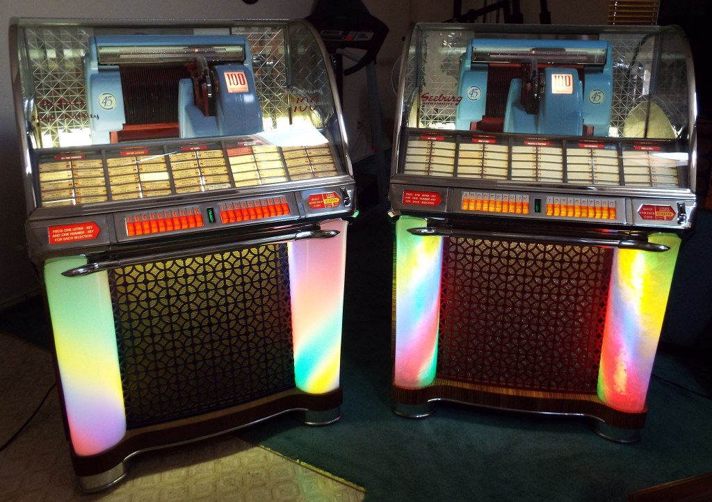 Gallery 1958 Seeburg 201 1962 Seeburg DS160 1954 Seeburg HF100R 1946 RS1-8 Tear Drop 1960 AQ100 1961 AY160 1953 HF100G AY160 w/Ear Speakers 1977 Seeburg STD4 Mardi Gras 1989 Seeburg SMC2 Phoenix 1952 Seeburg 200CU1 45 Player 1979 Seeburg SMC1 Disco 1946 RS1-8 Tear Drop Speaker SMC1